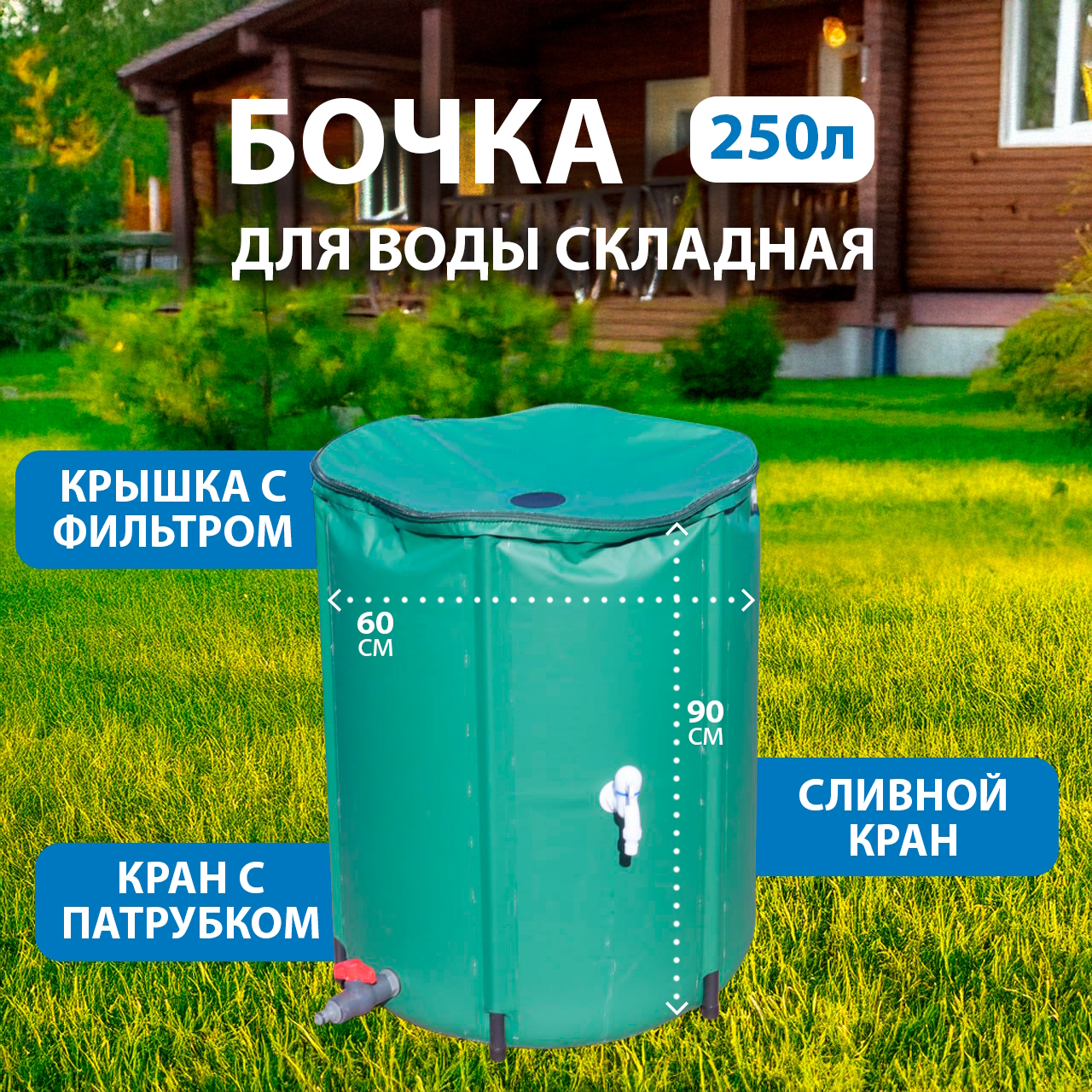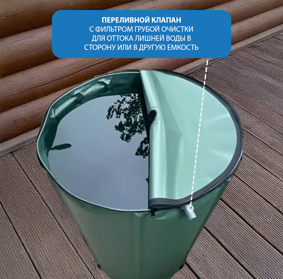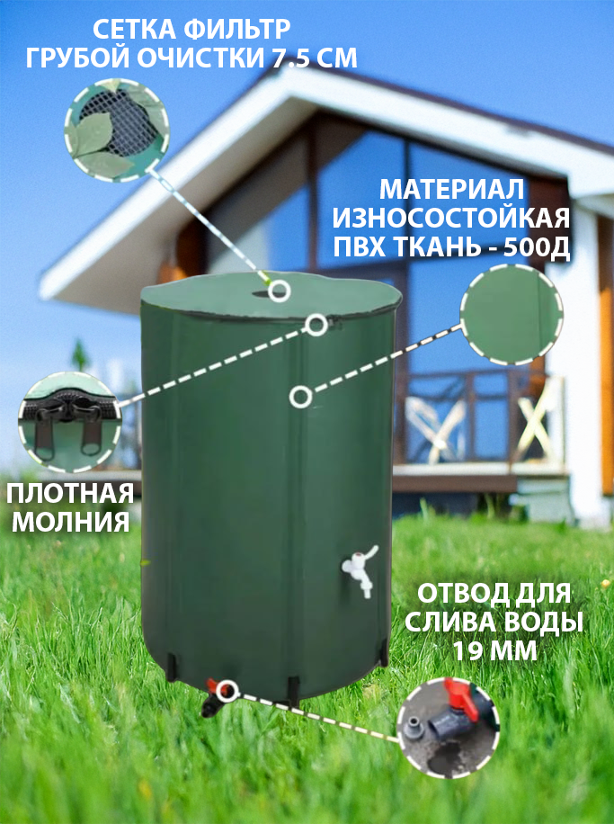 Удобная и функциональная складная бочка — идеальное решение для всех садовых нужд. С ее вместительным объемом 250 литров она позволит вам легко собирать и хранить дождевую воду, превращая ее в ценный ресурс для полива растений. Бак изготовлен из износостойкой ПВХ ткани, которая устойчива к ультрафиолету и не подвержена коррозии, в отличие от металлических бочек. Ее компактные размеры — высота 90 см и диаметр 60 см — позволяют использовать ее как на улице, так и в помещении. Крышка на молнии облегчает доступ к содержимому бочки, а кран позволяет комфортно использовать воду для полива. Больше никаких проблем с перевозкой тяжелых бочек или опасности замерзания — эта складная емкость способна переносить отрицательные температуры. Данная складная емкость имеет множество применений: она может быть использована для сбора дождевой воды, полива растений или даже для противопожарных нужд. Ее удобное расположение отвода для воды и крана для полива на дне обеспечивает простоту использования. Но самое лучшее в этой складной емкости для воды — ее удобство. Расправьте, вставьте стойки и подпятники для надежности. Она легко собирается и разбирается, что позволяет сэкономить время и усилия при переноске или хранении. Также она очень легко моется, не требуя длительного мытья, в отличие от пластиковых баков. Внизу бака имеется отвод для воды диаметром 3/4 дюйма, который можно использовать для подключения садового шланга, чтобы поливать растения. Вверху бочки расположен отвод от перелива воды, куда также можно подключить шланг для наполнения. Эта складная емкость из ПВХ ткани — надежное и удобное решение для всех садовых и дачных работ.